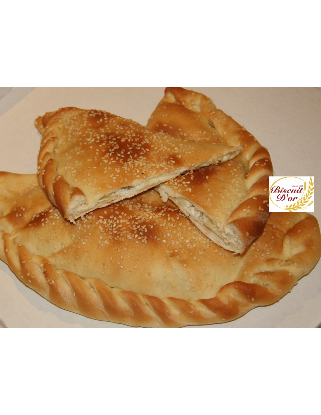Ingrédients: farine de blé, fromage de feta, fromage de mozzarella, sésame.